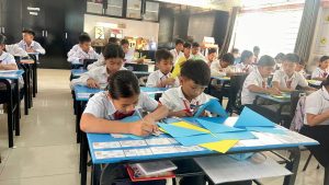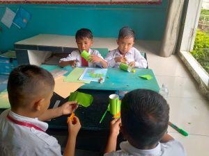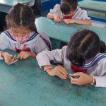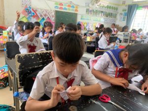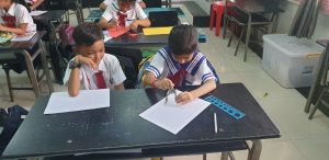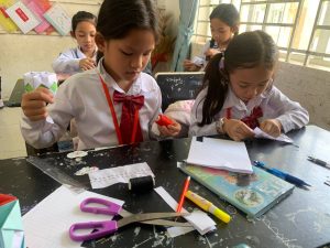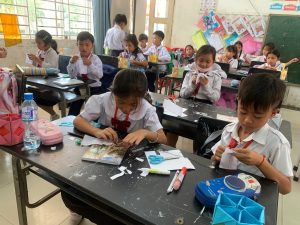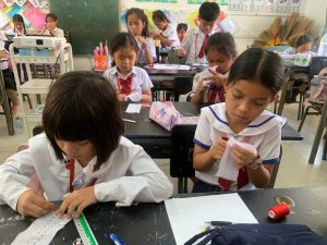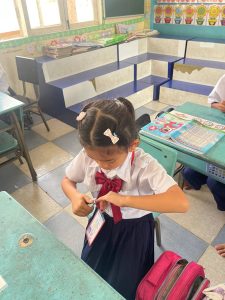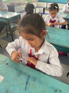 បន្ទាប់ពីអ្នកគ្រូបានបង្ហាញពីរបៀបកាន់កន្ត្រៃ និងរបៀបកាត់ដល់សិស្សានុសិស្ស និងចែកកន្ត្រៃដល់សិស្សម្នាក់មួយ។