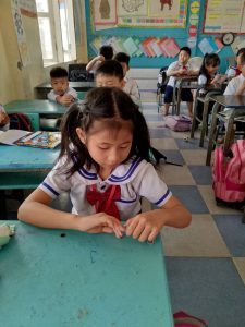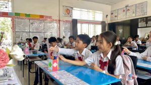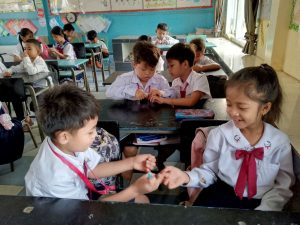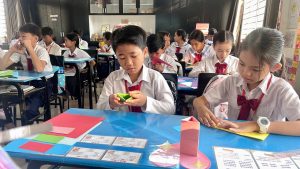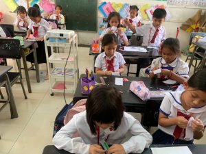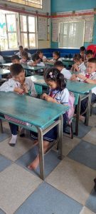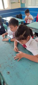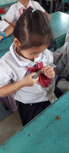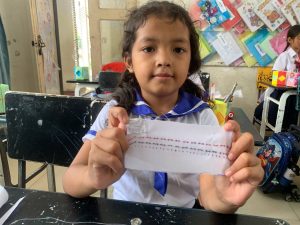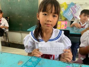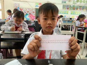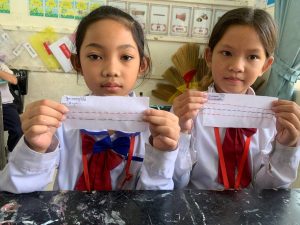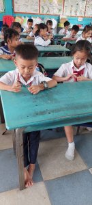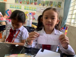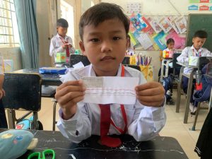 បន្ទាប់ពីសិស្សានុសិស្សបានកាត់ក្រចករួច សិស្សមានអារម្មណ៍សប្បាយរីករាយ ថែមទាំងបានលើកដីបង្ហាញទៅកាន់មិត្តរួមថ្នាក់ទៀតផង។