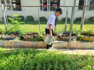 បំណិនជីវិត ការថែទាំ និងស្រោចទឹកដំណាំត្រកួន របស់សិស្សថ្នាក់ទី4ក។ សិស្សានុសិស្សតែងតែយកចិត្តទុកដាក់លើដំណាំដែលបានដាំ ពួកគេបានដាក់វេនគ្នាក្នុងការស្រោចទឹក និងតាមដានការលូតលាស់ដំដាំពីមួយថ្ងៃទៅមួយថ្ងៃ នេះក៏ចូលក្នុងបំណិនសង្កេតផងដែរ។ ក្រោយពេលទទួលបានផលដំណាំនេះ កូនសិស្សនឹងយកបន្លែទាំងនេះទៅធ្វើជាម្ហូបដូចជាឆា សម្ល អន្លក់ ជាដើមនៅក្នុងថ្នាក់រៀន នេះក៏ចូលជាបំណិនដាំស្លផងដែរ។