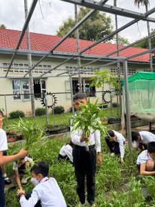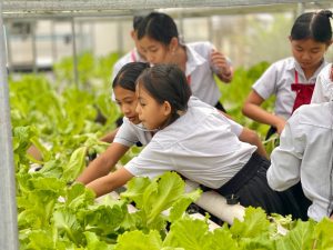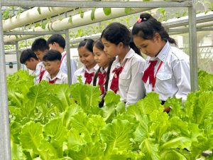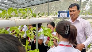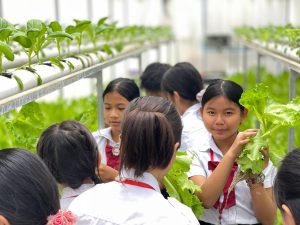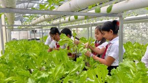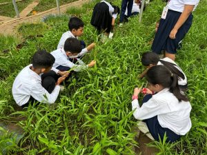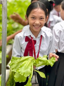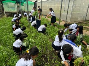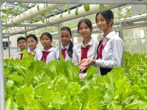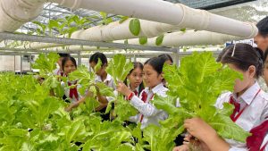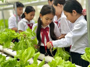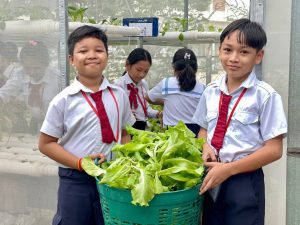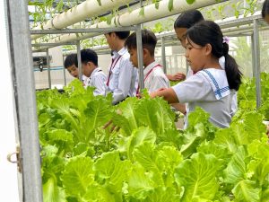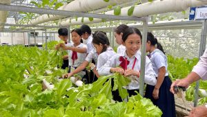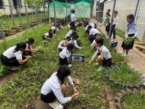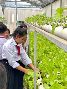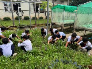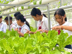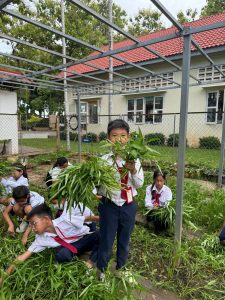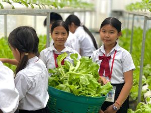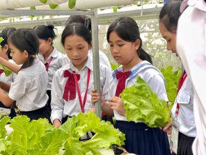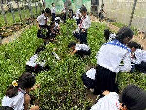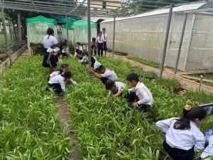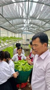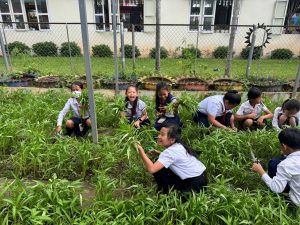 សកម្មភាពសិស្សប្រមូលផលដំណាំសាលាដលើទឹក។ ចំពោះការដាំដំណាំក្នុងសាលាពុំមានប្រើជីគីំមីនោះទេ គឺប្រើតែជីកំប៉ុសដែលផលិតដោយសិស្សក្នុងសាលារៀននេះផ្ទាល់។ បន្ទាប់ពីដកសាលាដចេញពីថ្នាលលើទឹក សិស្សបានយកទៅលាងទឹកសម្អាតឲ្យបានស្អាត និងត្រៀមដាក់លក់ ក្នុងនោះមានលោកគ្រូ អ្នកគ្រូ មាតាបិតា និងអាណាព្យាបាលទិញយកទៅធ្វើម្ហូប។ ក្រោយពេលលក់បន្លែអស់សិស្សានុសិស្សសប្បាយរីករាយណាស់ ហើយថវិកាដែលទទួលបានសិស្សទុកដាំបន្លែផ្សេងៗទៀតជាថ្មី។ សាលារៀននេះមានគោលបំណងគឺចង់ឲ្យសិស្សបានយល់ដឹង និងបានអនុវត្តន៍ដោយផ្ទាល់អំពីការដាំដំណាំលើទឹក ការផលិតជីកំប៉ុសធម្មជាតិ ការថែទាំ និងការប្រមូលផល។