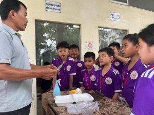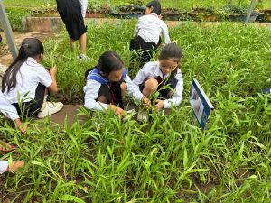 បន្ទាប់ពីរៀនទ្រឹស្ដីសិស្សបានអនុវត្តន៍ជាក្រុមក្នុងការបណ្ដុះកូនស្ពៃក្រញ៉ាញដំណាំលេីទឹក។ ដឹកនាំដោយ៖ លោកគ្រូ ណោ រ៉ា