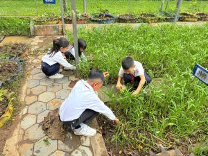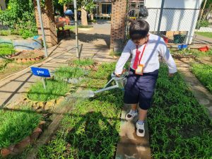 បំណិនជីវិត ការថែទាំ និងស្រោចទឹកដំណាំត្រកួន របស់សិស្សថ្នាក់ទី4ក។ សិស្សានុសិស្សតែងតែយកចិត្តទុកដាក់លើដំណាំដែលបានដាំ ពួកគេបានដាក់វេនគ្នាក្នុងការស្រោចទឹក និងតាមដានការលូតលាស់ដំដាំពីមួយថ្ងៃទៅមួយថ្ងៃ នេះក៏ចូលក្នុងបំណិនសង្កេតផងដែរ។ ក្រោយពេលទទួលបានផលដំណាំនេះ កូនសិស្សនឹងយកបន្លែទាំងនេះទៅធ្វើជាម្ហូបដូចជាឆា សម្ល អន្លក់ ជាដើមនៅក្នុងថ្នាក់រៀន នេះក៏ចូលជាបំណិនដាំស្លផងដែរ។