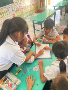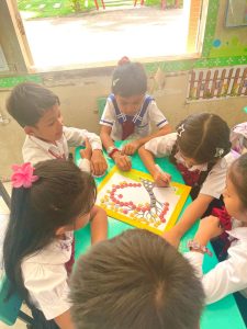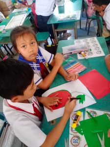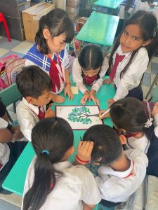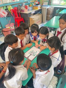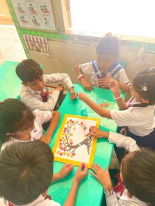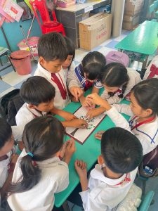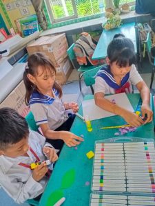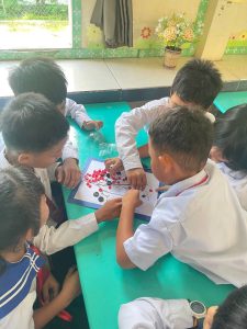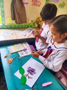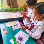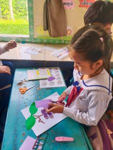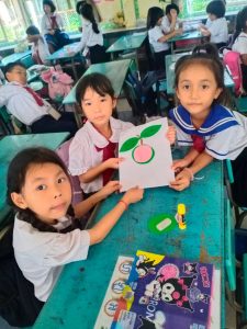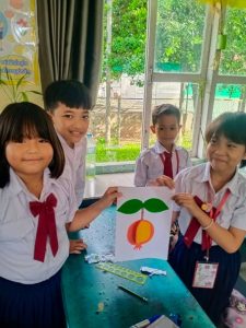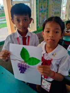 សកម្មភាពសិស្សថ្នាក់ទី2(ខ) កាត់ក្រដាសបិតធ្វើរូបផ្លែឈើ។ សិស្សានុសិស្សបានប្រើប្រាស់សម្ភារៈដូចជាកន្ត្រៃ កាវជាដើមយ៉ាងប្រុងប្រយ័ត្ន និងកែច្នៃបិតជារូបផ្លែឈើយ៉ាងស្រស់ស្អាត។