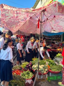 ក្រោយពេលសិស្សរៀបចំផែនកា លោកគ្រូទទួលបន្ទុកថ្នាក់បានដឹកនាំសិស្សឡើងផ្សារបឹងកុកដែលមានចម្ងាយប្រហែលជា ២០០ម៉ែត្រពីសាលារៀន ដោយមធ្យោបាយឡានរបស់លោកគ្រូផ្ទាល់។