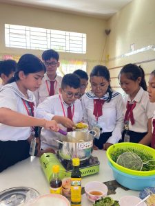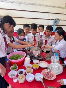 ក្រោយពេលសិស្សបញ្ជប់ការឡើងផ្សារ សិស្សបានត្រឡប់មកក្នុងថ្នាក់វិញជួយគ្នារៀបចំលាងសម្អាតបន្លែ សាច់ និងហាន់សាច់ កាត់បន្លែ ដើម្បីរៀបចំចម្អិន។ រយៈពេល១៥នាទីក្រោយមក សិស្សក្នុងមួយក្រុមៗបានចម្អិនសម្លម្ជូរគ្រឿងបានមួយឆ្នាំដែលមានរសជាតិឆ្ងាញ់ ដែលបានមកពីការចេះ សហការ សាមគ្គីភាពគ្នា និងចេះរៀបចំផែនការបានត្រឹមត្រូវ។