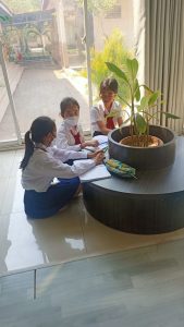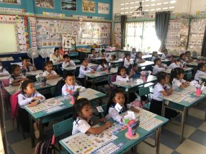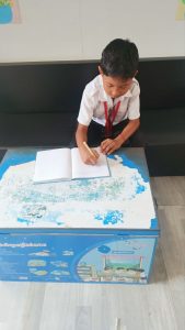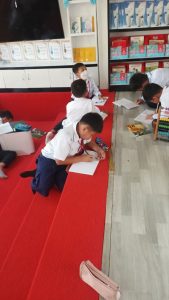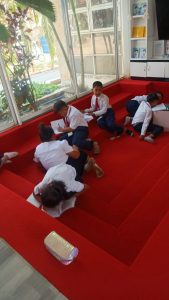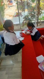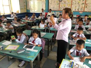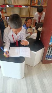 សកម្មភាពសិស្សថ្នាក់ទី១(ក) រៀនអានពាក្យតាមរយៈ Tablet នៅក្នុងបណ្ណាល័យ។ សិស្សានុសិស្សរីករាយនៅក្នុងការរៀន ព្រោះសាលាបានបញ្ចូលបច្ចេកវិទ្យាក្នុងការរៀនតាំងពីកម្រិតថ្នាក់ទី១។