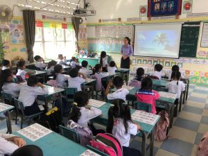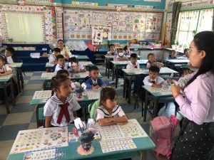 មុនពេលអ្នកគ្រូឱ្យសិស្សចូលបណ្ណាល័យអ្នកគ្រូបានឱ្យសិស្សឈរជាជួរ និងបានសួរពីបទបញ្ជាផ្ទៃក្នុងរបស់បណ្ណាល័យ។​ សិស្សបានស្វែងរកឈ្មោះសត្វចតុប្បាទតាមរយៈសៀវភៅ Tablet Computer និងSmart TV។ ក្រោយពេលសិស្សរកឈ្មោះសត្វចតុប្បាទបានហើយ អ្នកគ្រូបានត្រួតពិនិត្យកិច្ចការរបស់សិស្ស ដើម្បីវាយត្រាទទួលស្គាល់។
