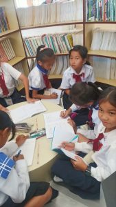សិស្សរៀនអានពាក្យតាមរយៈ Tablet នៅក្នុងបណ្ណាល័យ