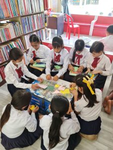 នៅថ្ងៃទី ១៩ ខែ កក្កដា ឆ្នា ២០២៣ សិស្សានុសិស្សថ្នាក់ទី ៤ក បានចូលបណ្ណាល័យធ្វើការងារក្រុមដើម្បីបត់រូបសត្វចាប បេះដូង ខោអាវ ទូក ត្របកឈូក តាមក្រុមនីមួយៗ។