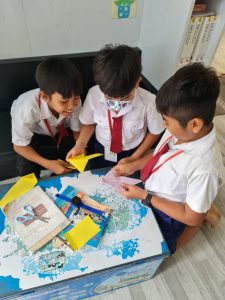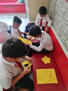 នៅថ្ងៃទី ១៩ ខែ កក្កដា ឆ្នា ២០២៣ សិស្សានុសិស្សថ្នាក់ទី ៤ក បានចូលបណ្ណាល័យធ្វើការងារក្រុមដើម្បីបត់រូបសត្វចាប បេះដូង ខោអាវ ទូក ត្របកឈូក តាមក្រុមនីមួយៗ។