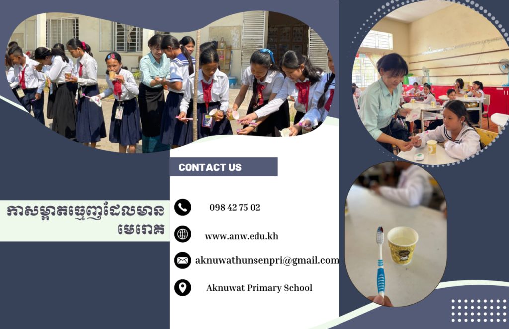 សិស្សានុសិស្សក្នុងក្លឹបព្រឹត្តិបត្រព័ត៌មានបានបង្កើតខិត្តប័ណ្ណអំពីសកម្មភាពអ្នកគ្រូជនជាតិជប៉ុនបង្រៀនសិស្សថ្នាក់ទី៦ អំពីការសម្អាតធ្មេញដែលមានមេរោគ។