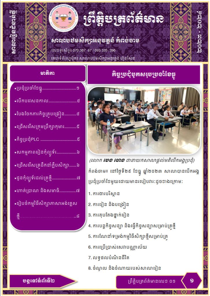 សិស្សានុសិស្សនៅសាលាបឋមសិក្សាអនុត្តន៍ ហ៊ុនសែន បានចូលរួមក្លឹបសិក្សាព្រឹត្តិបត្រព័ត៌មាន គោលបំណងផ្សព្វផ្សាយព័ត៌មានរបស់សាលាជាប្រចាំខែ។ ដែលសិស្សក្នុងក្លឹបសិក្សាមានចំនួន ៦នាក់រួមមាន៖